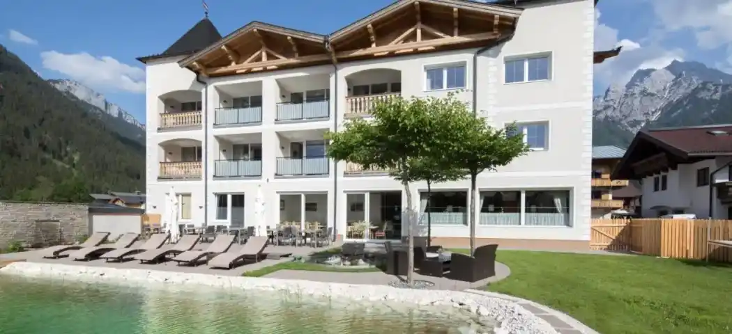 Lifestyle trifft auf Tradition: modernste Ausstattung in Top-Qualität mit allen Annehmlichkeiten, die Ihr Euch nur wünschen könnt. Entspannen, Wohlfühlen und Genießen ist das Motto des Hotels, welches Euch einen Wellnessbereich mit Bio-Zirbensauna, Infrarotsauna, Ruheraum, Erlebnisdusche und Granderwasser-Trinkbrunnen bietet. Hier trefft Ihr auf Produkte von Luis Trenker und Pure Herbs, welche Euch die Entspannung schon beim Betreten riechen lässt. Der Natur-Badeteich mit Sonnenterrasse bietet Euch im Freien eine kleine Oase inmitten der Natur.