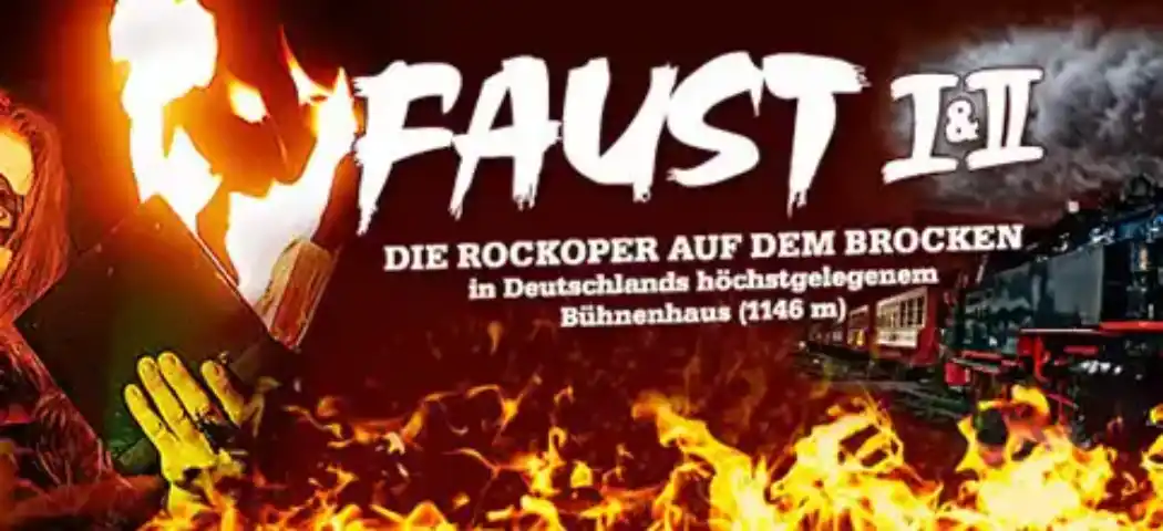 Genießen Sie ein unvergessliches Event-Highlight mit nostalgischer Zugfahrt im Mephisto-Express, teuflischem Mephisto-Mahl beim Brockenwirt und die Verbindung zwischen klassischer Theaterkunst und moderner Rock- und Pop-Musik!